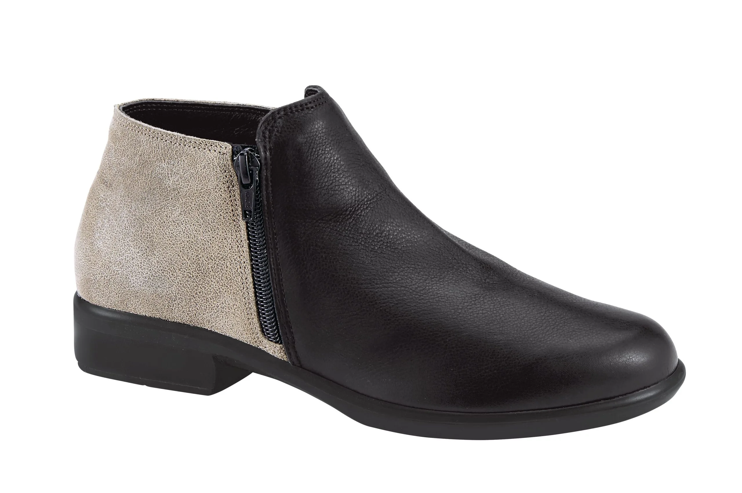 A closet staple year-round, the women’s Naot Helm ankle boot is the perfect shaft height to wear with a dress or under jeans. The chic bootie features a full grain leather and suede upper with a side zipper for easy entry. The cushioned, removable cork and latex footbed is shock absorbent and provides flexibility for added comfort.