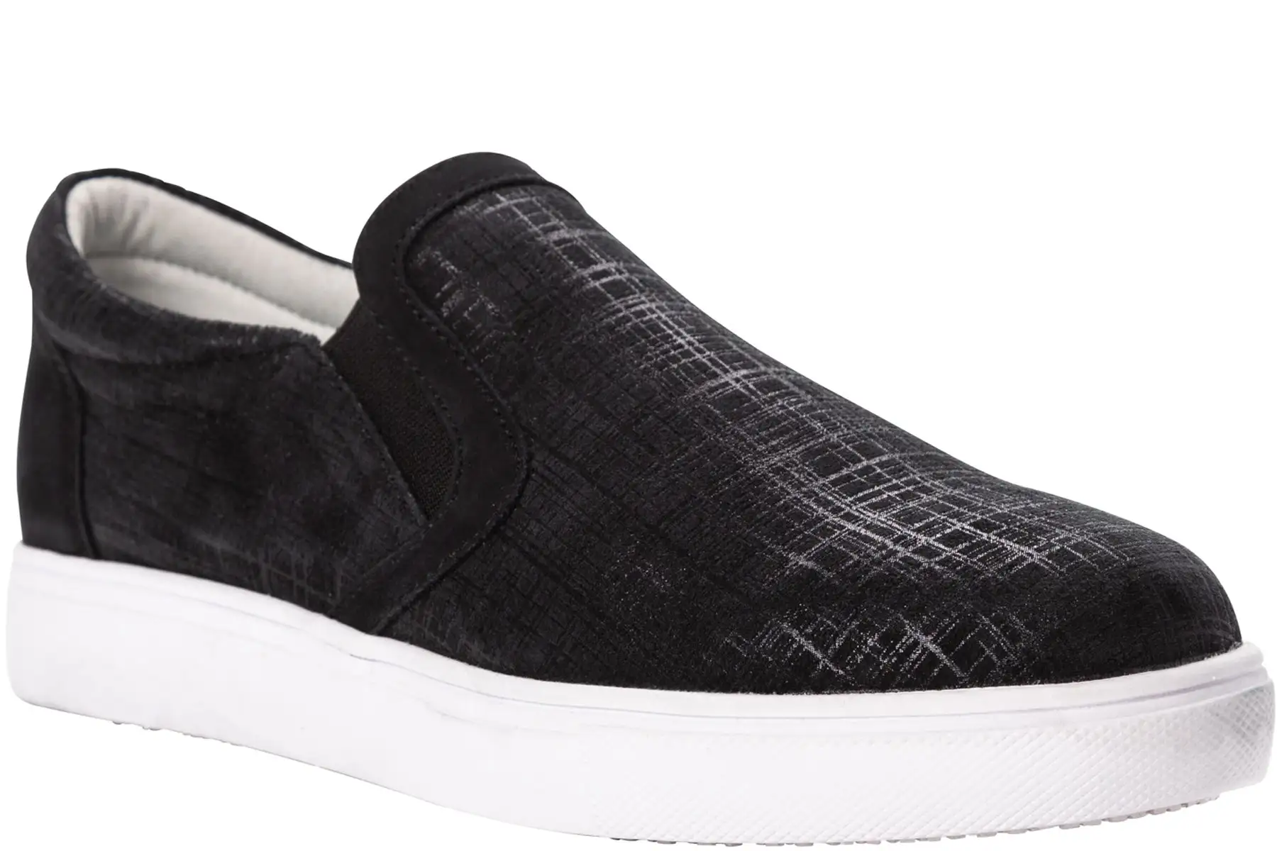 Casual comfort at its finest! The Propet Nyomi casual slip-on sneaker is on-trend and classic. Uppers in charming printed nubuck gives this simple style flair. With a slip-resistant outsole, this style can be worn on or off the clock.
