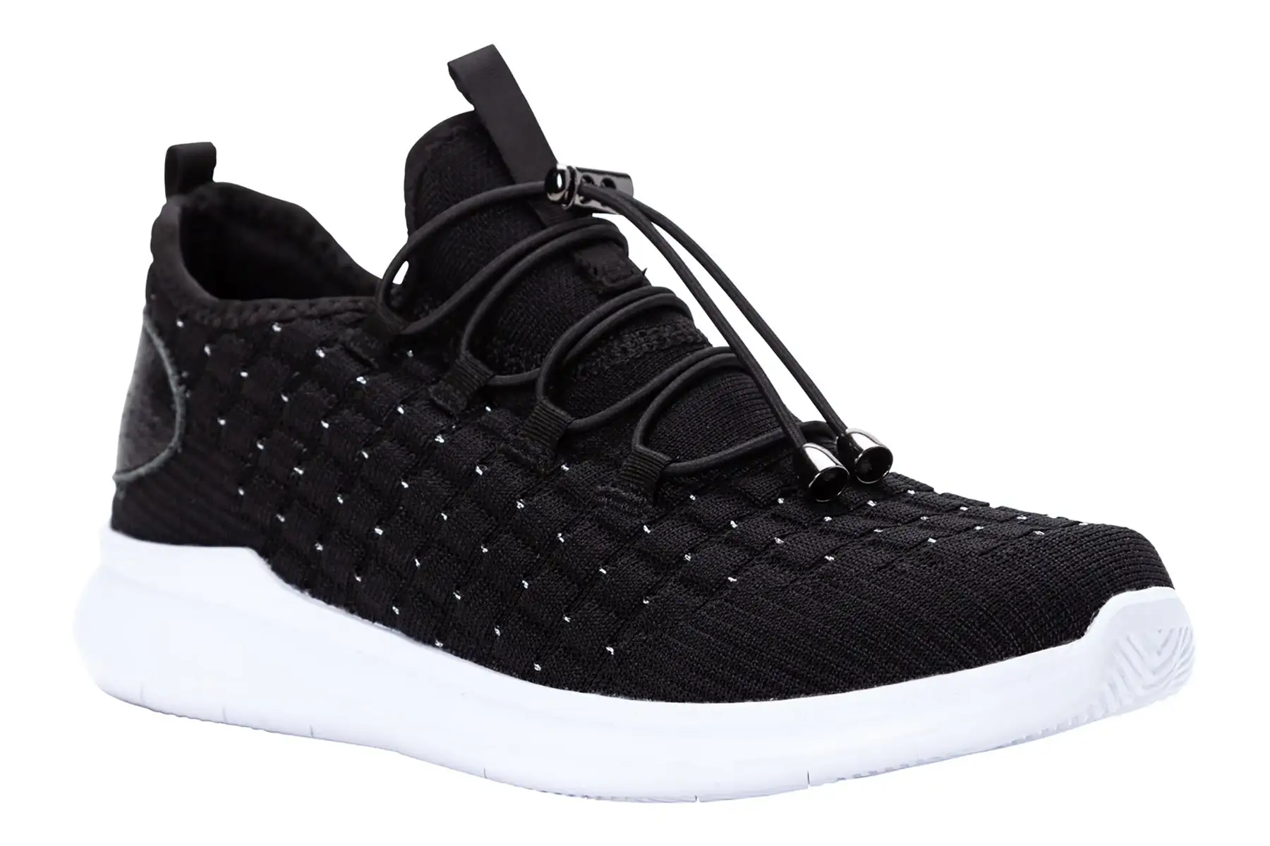 Propet TravelBound is a breathable and comfortable sneaker. Features include a one piece stretch knit mesh upper, removable footbed and EVA and rubber outsole. Toggle laces, knit-in texture detailing and external heel counter support makes these sneakers stand out.