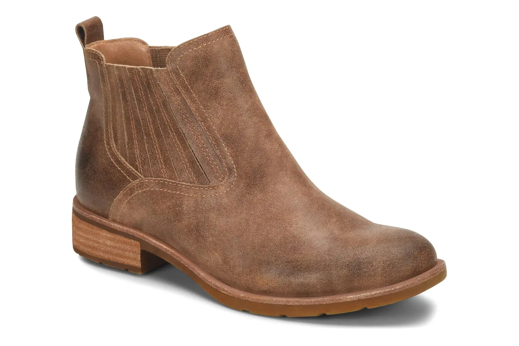 Sofft Bellis III is a comfortable and weather-friendly Chelsea boot. Features include waterproof leather and suede uppers, cushioned footbed and TPR outsole. A microfiber lining, seam-sealed construction, stretch goring and 1 ½ inch stacked heel height elevates these reliable boots.