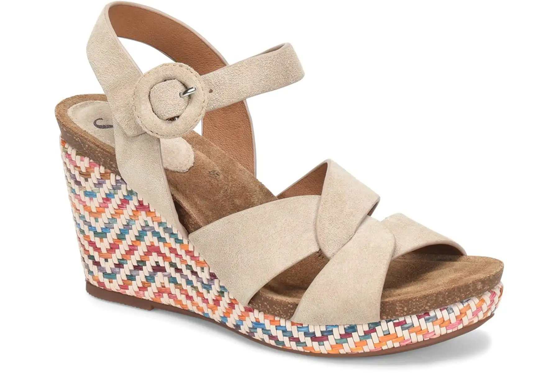 Sofft Casidy is a wedge sandal designed for summertime. These elegant sandals have leather or suede uppers, cork EVA footbed, PU wedge and CPE outsole. An adjustable buckle, suede sock and a 3 ½ inch heel height with 1-inch platform will make these wedges a warm weather favorite.