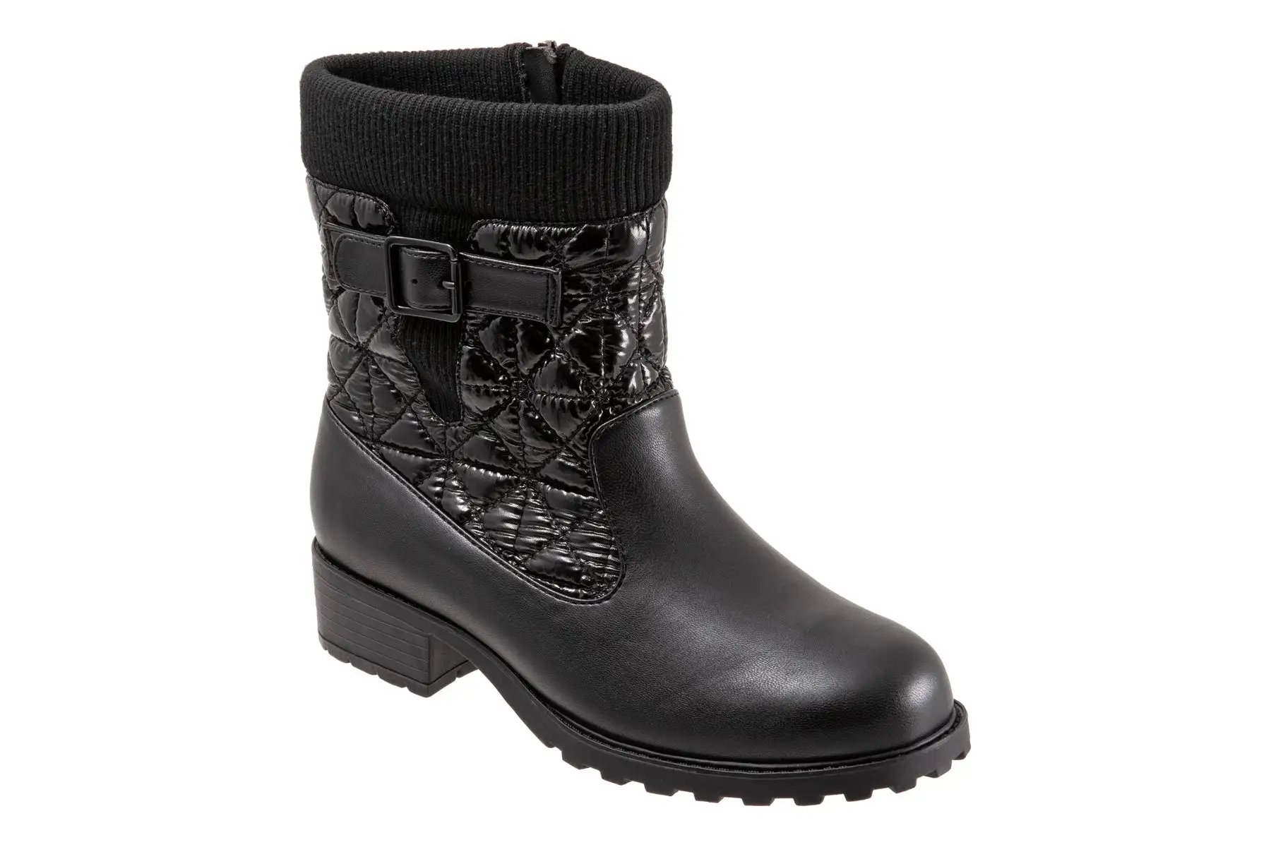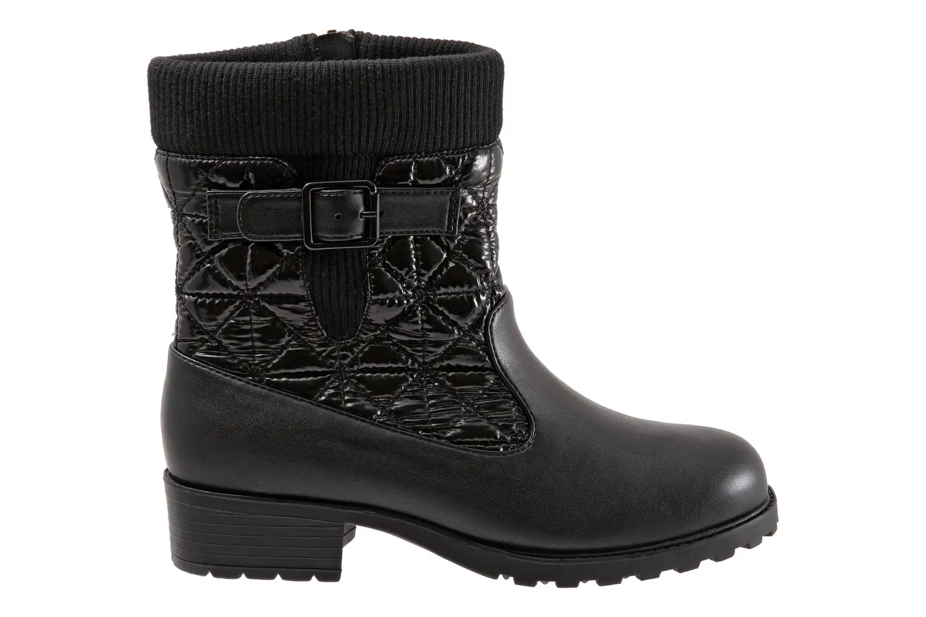 Stay effortlessly chic and toasty as the temperature drops with our charming mid boot featuring a plush knit topline and cozy lofted quilting keeping you warm all day long.